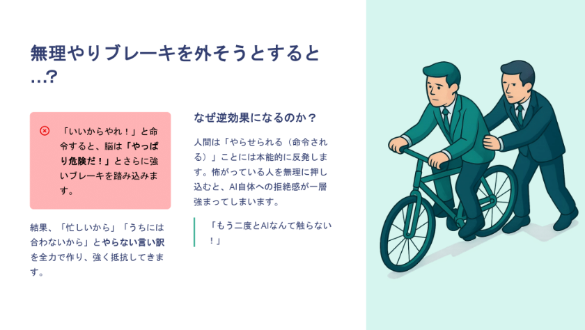 【2.AI導入がうまくいかない理由(心理と組織)】③ 心のブレーキを外す方法