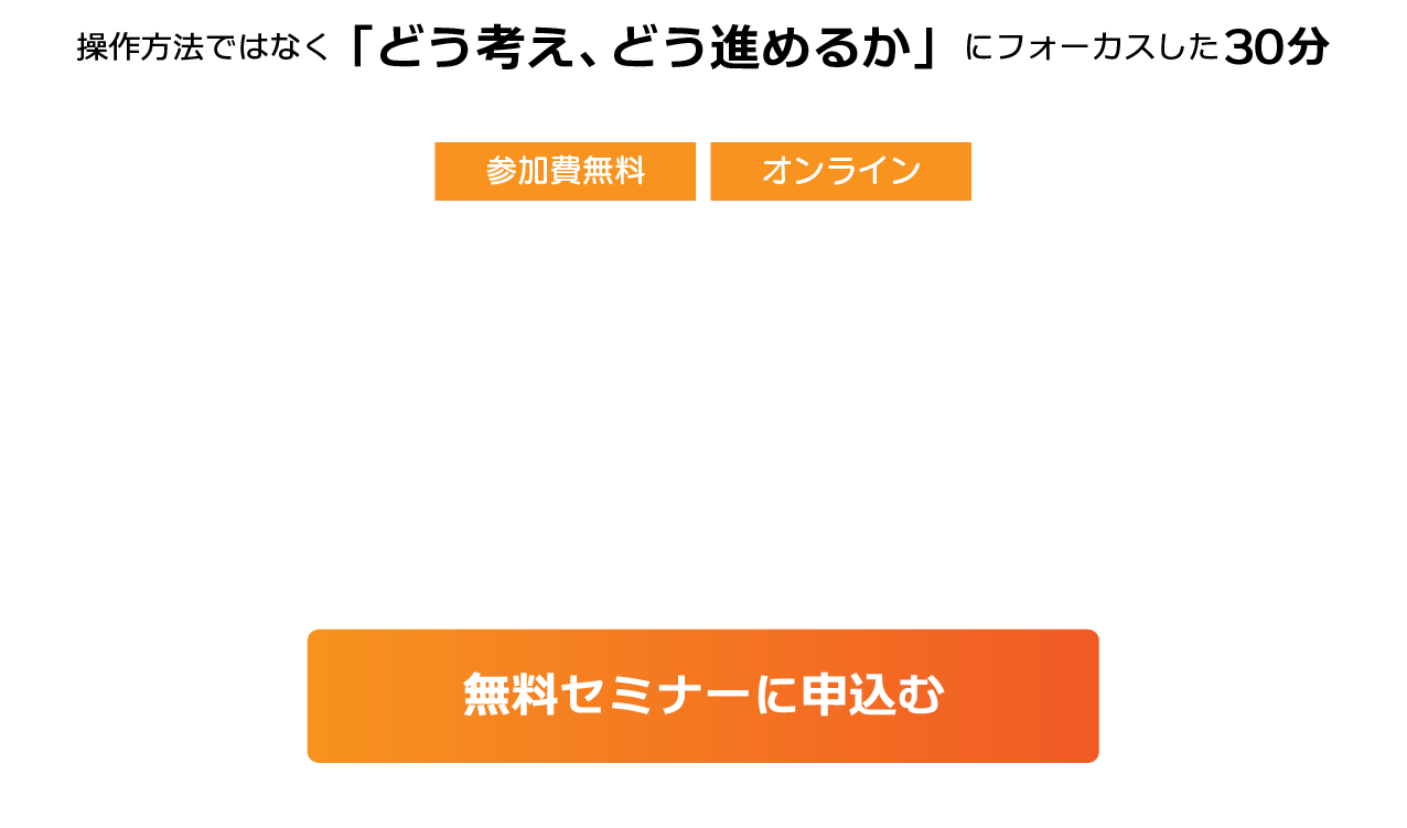 操作方法ではなく「どう考え、どう進めるか」にフォーカスした30分