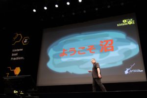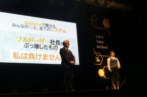 終始テンションアゲっぱなしで突っ走った畠山氏は、kintone×Enjoyを意味する「kinjoy」を掲げ、IT素人集団が社員をkintoneに巻き込むための活動や活用事例について説明した。